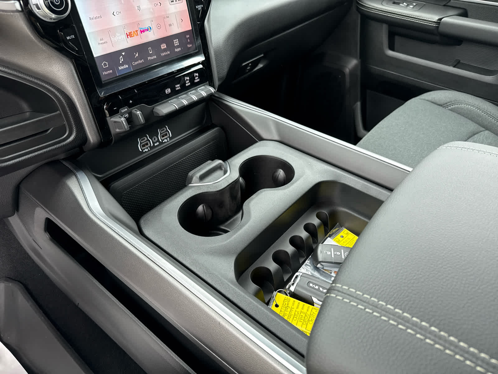 Selective Catalytic Reduction (Urea), GVWR: 11,040 lbs, Dual 730 Amp Maintenance Free Batteries, Cummins Turbo Diesel Badge, Heavy Duty Engine Cooling, Diesel Exhaust Brake, Supplemental Heater, 3.42 Axle Ratio, Front Bumper Sight Shields, Capless Fuel Fill w/o Discriminator, Emergency Vehicle Alert System (EVAS), Glove Box Lamp, 12 Touchscreen Display, Auto Power-Folding Mirrors, Footwell Courtesy Lamp, Anti-Spin Differential Rear Axle, MOPAR Deployable Bed Step, Alexa Built-In, Forward & Reverse Utility Lights, Locking Lower Glove Box, Remote Start System, 9 Alpine Speakers w/Subwoofer, Dual Glove Boxes, 2nd Row In Floor Storage Bins, Rear View Auto Dim Mirror, Rear Dome w/On/Off Switch Lamp, LED Bed Lighting, GPS Navigation, SiriusXM w/360L, Connected Travel & Traffic Services, Foam Bottle Insert (Door Trim Panel), Big Horn IP Badge, Off-Road Info Pages, Trailer Tow Pages, HD Radio, Radio: Uconnect 5 Nav w/12.0 Display, Power Heated Folding Telescopic Mirrors, Steering Wheel Mounted Audio Controls, Air Conditioning ATC w/Dual Zone Control, MOPAR Spray In, CHROME FLAT WHEEL-TO-WHEEL SIDE STEPS, Heated Steering Wheel, Heated Front Seats, Bucket Seats, Power Adjust 8-Way Driver Seat, Folding Flat Load Floor Storage, Rear 60/40 Folding Seat, Front Seat Back Map Pockets, Power 2-Way Driver Lumbar Adjust, Full Length Upgraded Floor Console, MOPAR FRONT & REAR RUBBER FLOOR MATS, TRANSMISSION: 8-SPEED TORQUEFLITE HD AUTOMATIC. Ram Big Horn with Bright White Clearcoat exterior and Black interior features a Straight 6 Cylinder Engine with 430 HP at 2800 RPM*. Approx. Original Base Sticker Price: $73,000*.