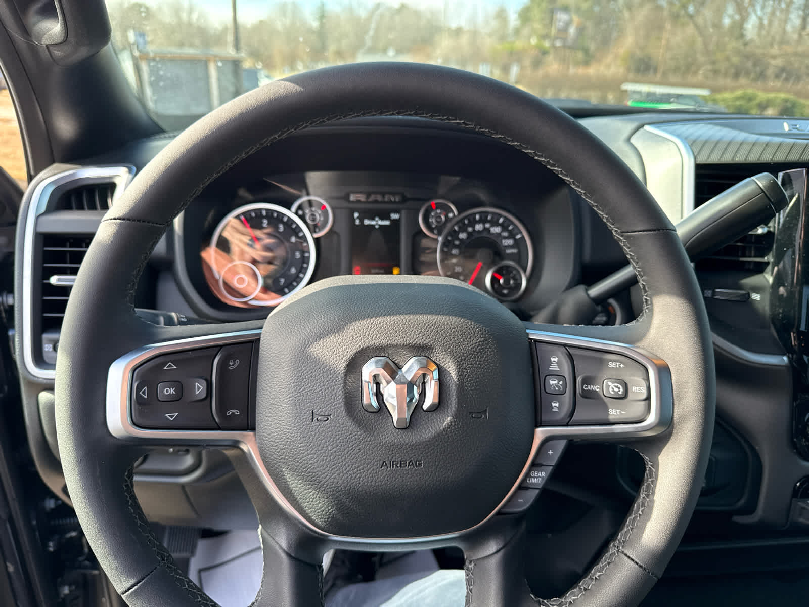 Tires: LT285/60R20E OWL On/Off Road, Forward & Reverse Utility Lights, Locking Lower Glove Box, Rear View Auto Dim Mirror, Power Heated Folding Telescopic Mirrors, Rear Dome w/On/Off Switch Lamp, Steering Wheel Mounted Audio Controls, Dual Glove Boxes, Glove Box Lamp, Auto Power-Folding Mirrors, Footwell Courtesy Lamp, Anti-Spin Differential Rear Axle, Foam Bottle Insert (Door Trim Panel), Luxury Steering Wheel, 2nd Row In Floor Storage Bins, Power Telescoping Mirrors, Big Horn IP Badge, MOPAR Spray In Bedliner, LED Bed Lighting, MOPAR Deployable Bed Step, (STD), (STD), Rear 60/40 Folding Seat, Front Center Seat Cushion Storage, Power Adjust 8-Way Driver Seat, Folding Flat Load Floor Storage, Front Seat Back Map Pockets, Power 2-Way Driver Lumbar Adjust. Ram Big Horn with Forged Blue Metallic exterior and Black interior features a 8 Cylinder Engine with 405 HP at 5600 RPM*.