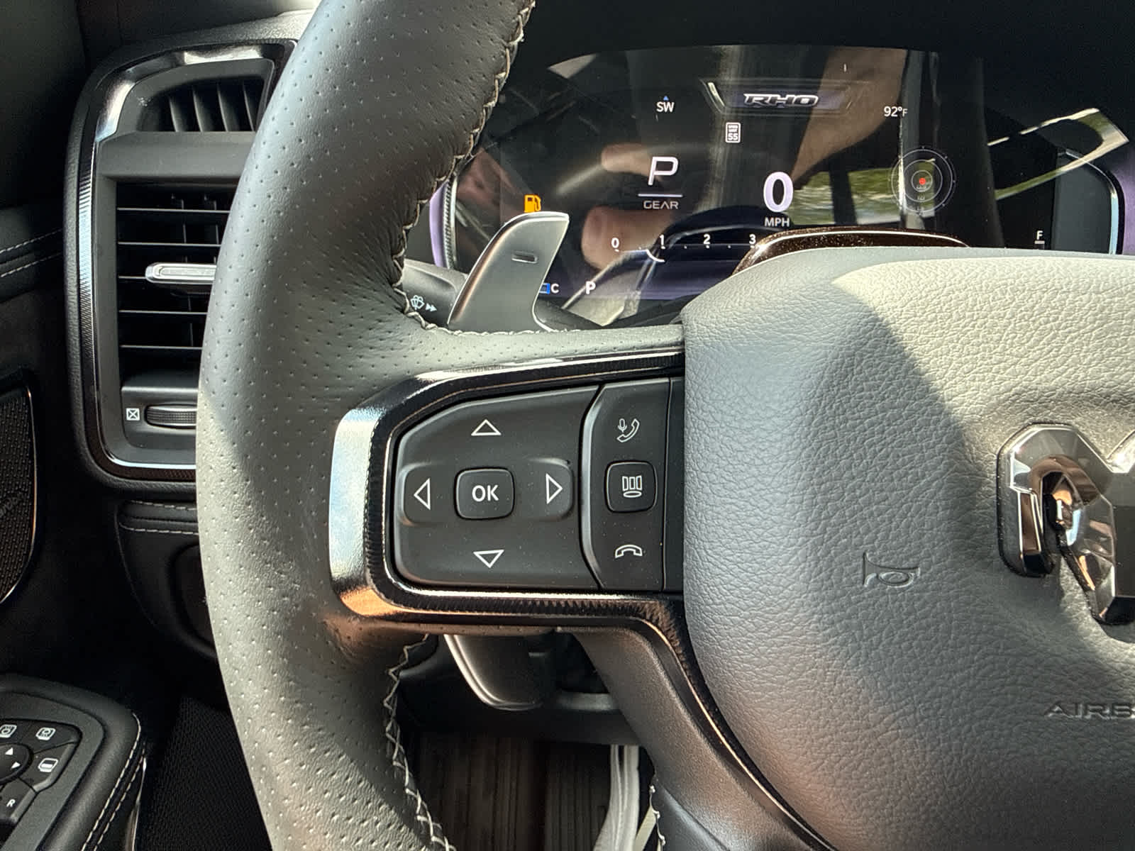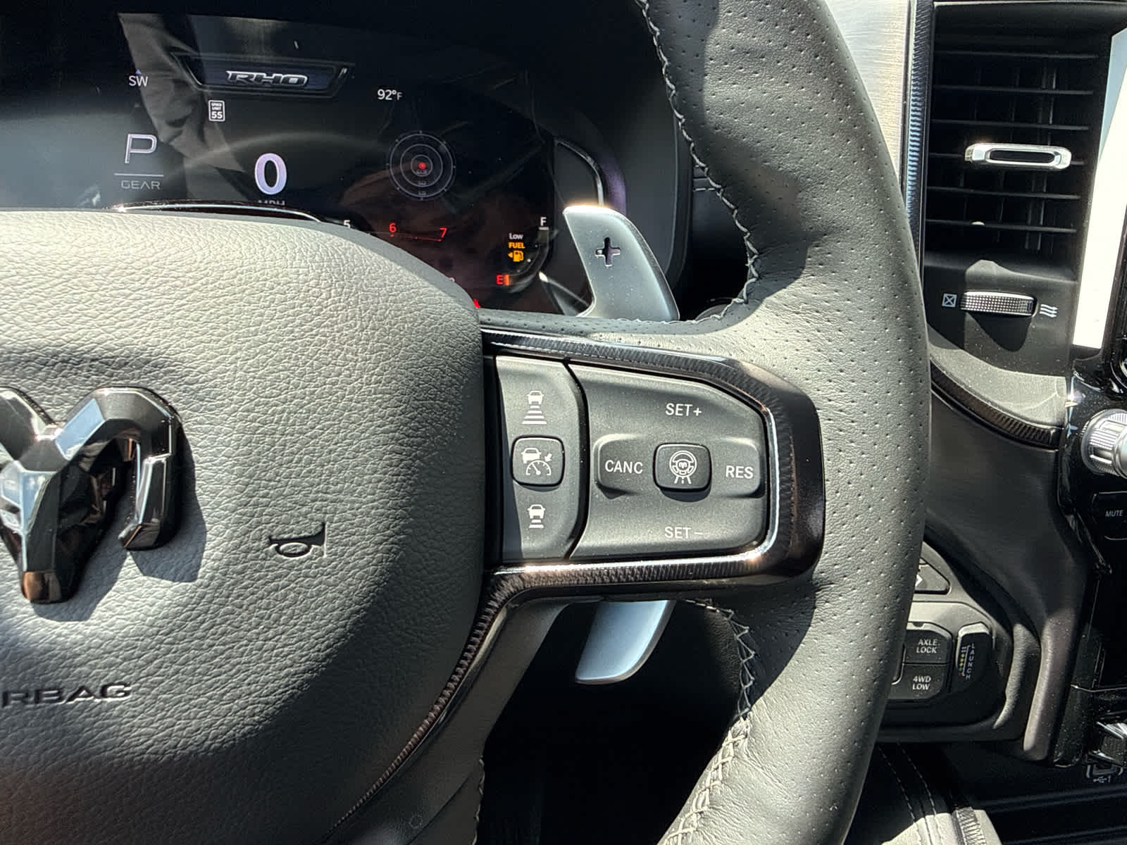 Full Length Premium Upgraded Floor Console, Surround View Camera System, Rain Sensitive Windshield Wipers, LED CHMSL Lamp, Power Adjustable Pedals w/Memory, Front Passenger Interactive Display, Traffic Sign Recognition, Hands-Free Active Driving Assist System, Front Passenger Power Seat Back Massage, Head Up Display, Evasive Steer Assist, Heated Second Row Seats, Drowsy Driver Detection, Driver Power Seat Back Massage, Intersection Collision Assist System, Leather/Carbon Flat-Bottom Steering Wheel, Smartphone As A Key Capable, 14.4 Touchscreen Display, Driver/Passenger Wrapped Assist Handles, Dual Wireless Charging Pad, Radio: Uconnect 5 Nav w/14.4 Display, Ventilated Rear Seats, Rear 60/40 Folding Split Recline Seat, 240 Amp Alternator, Ventilated Front Seats, harman/kardon® 19 Speaker, WHEELS: 18 X 9 BEAD-LOCK ALUMINUM, Dome Dual LED Reading Lamp, MOPAR OFF-ROAD STYLE RUNNING BOARDS, Forward & Reverse Utility Lights, Trailer Tow Mirrors, Exterior Mirrors w/Memory, Mirror Clearance/Running Lights, Black Exterior Mirrors, Power Telescoping Mirrors, Auto Dim Exterior Passenger Mirror, Power-Adjustable Convex Aux Mirrors, (STD), (STD). Ram RHO with Silver Zynith exterior and Black interior features a Straight 6 Cylinder Engine. Approx. Original Base Sticker Price: $94,900*.