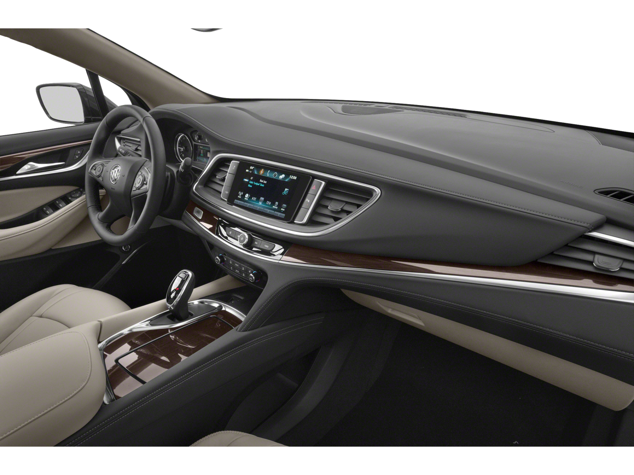 - Avenir Package Premium Package content plus: unique upper and lower grilles, wheels and front door badging; unique Chestnut/Ebony or Ebony interior color including seat stitching and piping; Avenir embroidered head rests and floor mats; bold script sill plates all four doors; premium film decor accents; wood steering wheel; Buick Infotainment with Navigation; wireless charging; power dual moonroof with fixed rear skylight; 8" reconfigurable driver information center; Surround Vision with full display inside rearview camera mirror and 5 exterior colors [White Frost Tricoat, Satin Steel Metallic, Pepperdust, Dark Slate Metallic and Ebony Twilight Metallic]