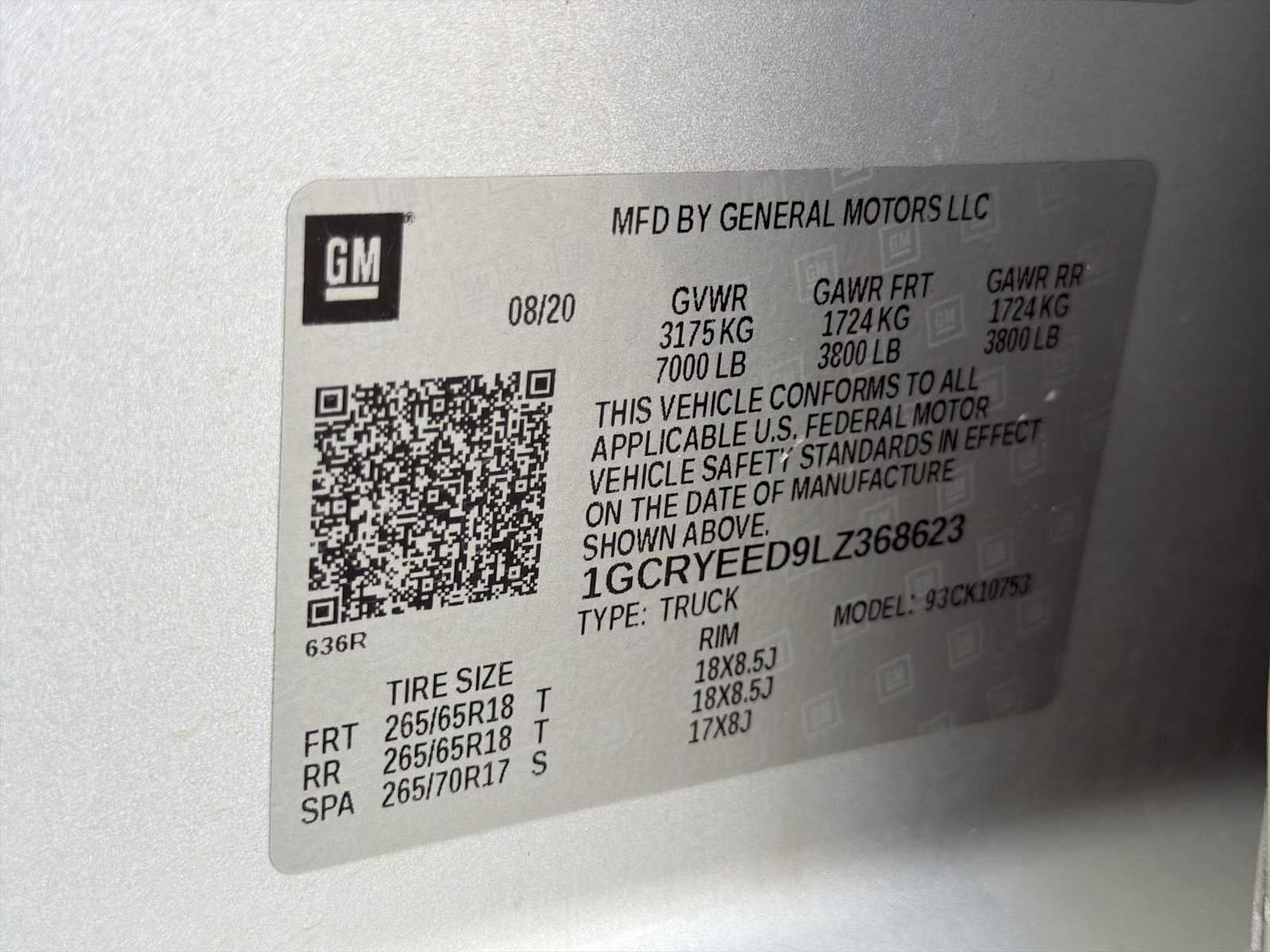 - Front Tire Size: 265/65R18SL