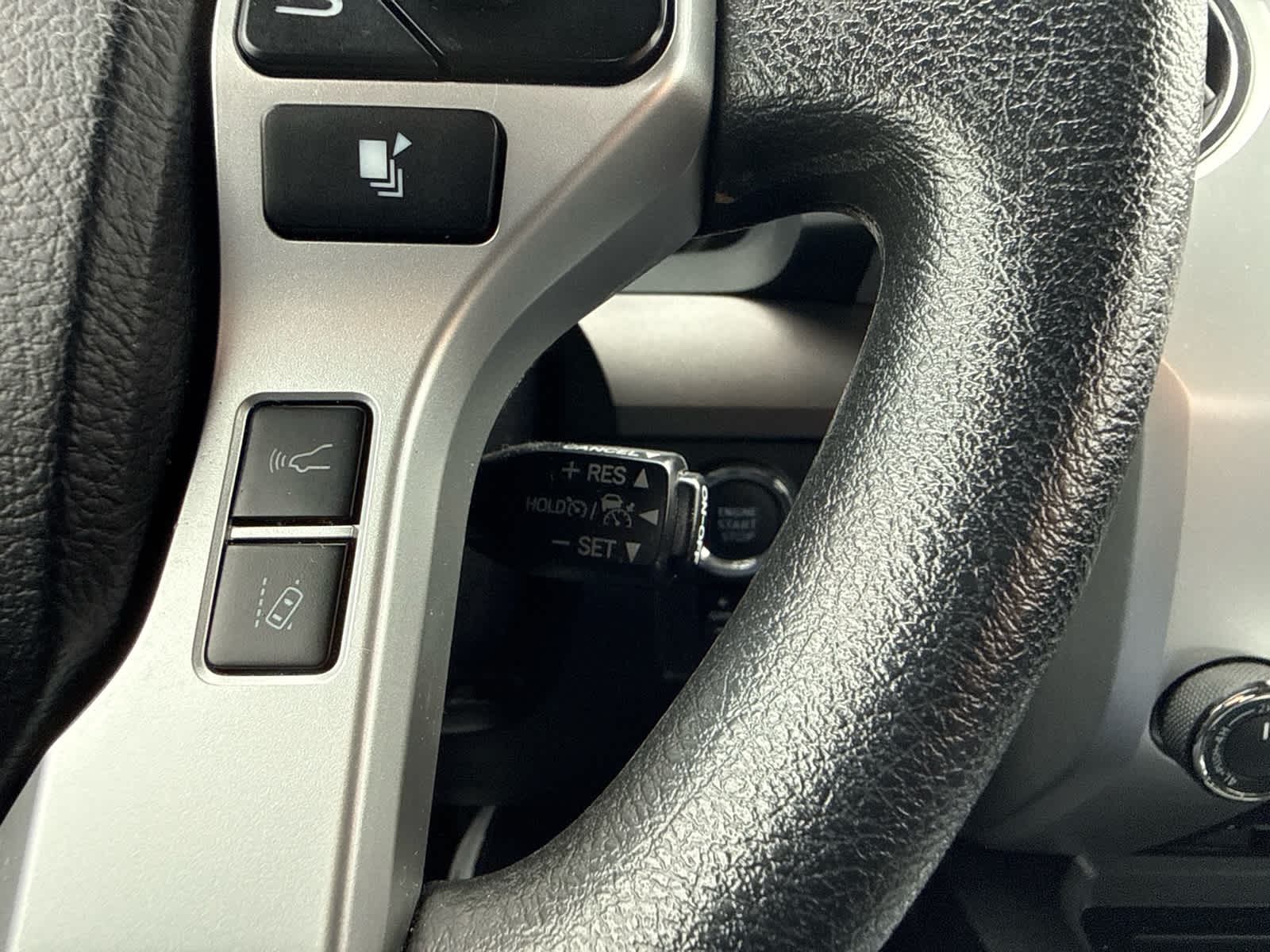 hood scoop, Gray Grille w/Color-Keyed Surround, color-keyed surround, Bedside TRD Sport Decal, Radio: Premium Audio w/Dynamic Navigation, 9 speakers, 8 touch-screen, subwoofer, amplifier, AM/FM/HD Radio, Android Auto®, Apple CarPlay® compatible, Amazon Alexa compatible, USB media port, USB charge ports, dynamic navigation w/up to 3-year trial of dynamic POI search and dynamic voice recognition, Bluetooth® hands-free phone capability w/music streaming, Service Connect, Remote Connect and destination assist, Auto-Dimming Rearview Mirror, HomeLink Universal Transceiver, Remote Connect, 1-year trial, engine start, lock/unlock doors and more using your compatible smart device, TRD Sport Floor Mats, Wide Angle LED Front Fog & Driving Lights, LED, Front & Rear Clearance Backup Sonar, Blind Spot Monitor w/Rear Cross Traffic Alert, lane change assist, front center console w/3 cupholders and replaces standard equipment column shifter w/floor mounted urethane shift lever and knob, Urethane Tilt/Telescopic Steering Wheel, column shifter w/audio, multi-information display, Bluetooth®, hands-free phone, voice-command, dynamic radar cruise control and lane departure alert controls, Anti-Theft Immobilizer w/Alarm, 38 Gallon Fuel Tank Capacity, Front Bucket Seats, 10-way power-adjustable drivers seat and 4-way adjustable front passenger seat, STEALTH BLACK RUNNING BOARDS (SET), SPRAY-IN BEDLINER (SET). Toyota SR5 with Midnight Black Metallic exterior and Black interior features a 8 Cylinder Engine with 381 HP at 5600 RPM*. Non-Smoker vehicle, One Owner
